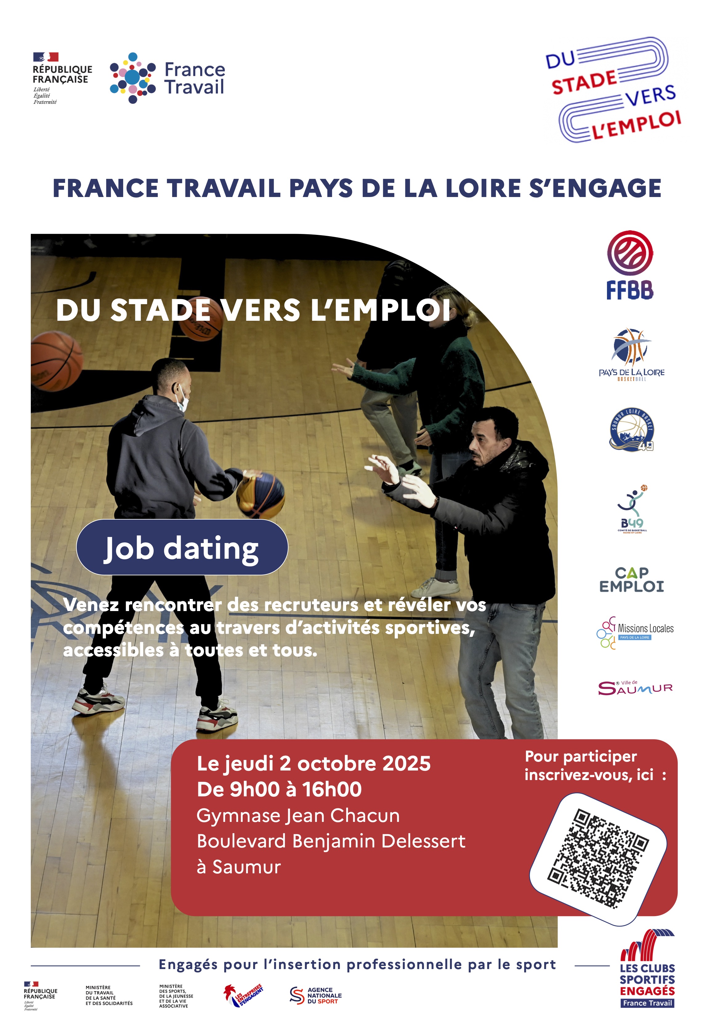 Le Comité co-organise, avec la Fédération Française de BasketBall, la Ligue Pays de Loire, le club de Saumur et France Travail, un Stade vers l'Emploi !
